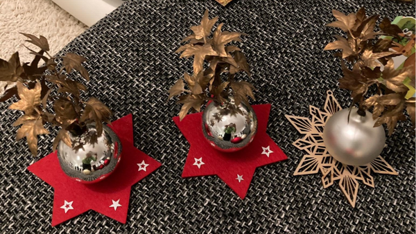 - umfunktionierte Weihnachtskugeln, als Vase und zu Dekozwecken nutzbar (Bild 4) [pro Kugel 4,50€]