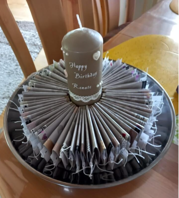 - Geburtstagskerze (personalisierbar) und Sprüche für jedes Lebensjahr auf Tablett (Bild 5) [40,00€]